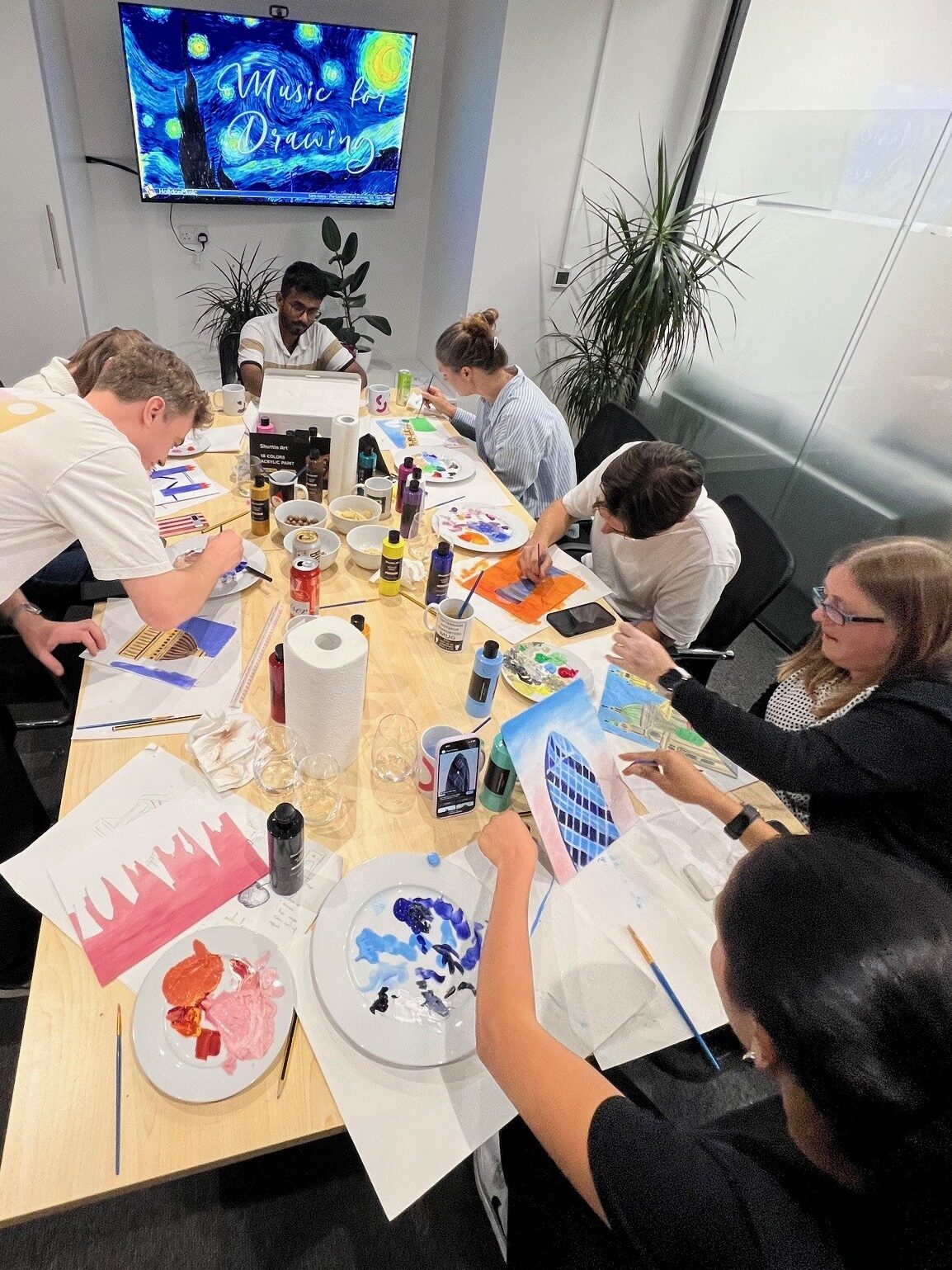 Armed with canvases, brushes, and a full range of acrylic paints, everyone let their creativity shine. It was such a fun and relaxing evening — and we discovered some real hidden artistic talent in the team!